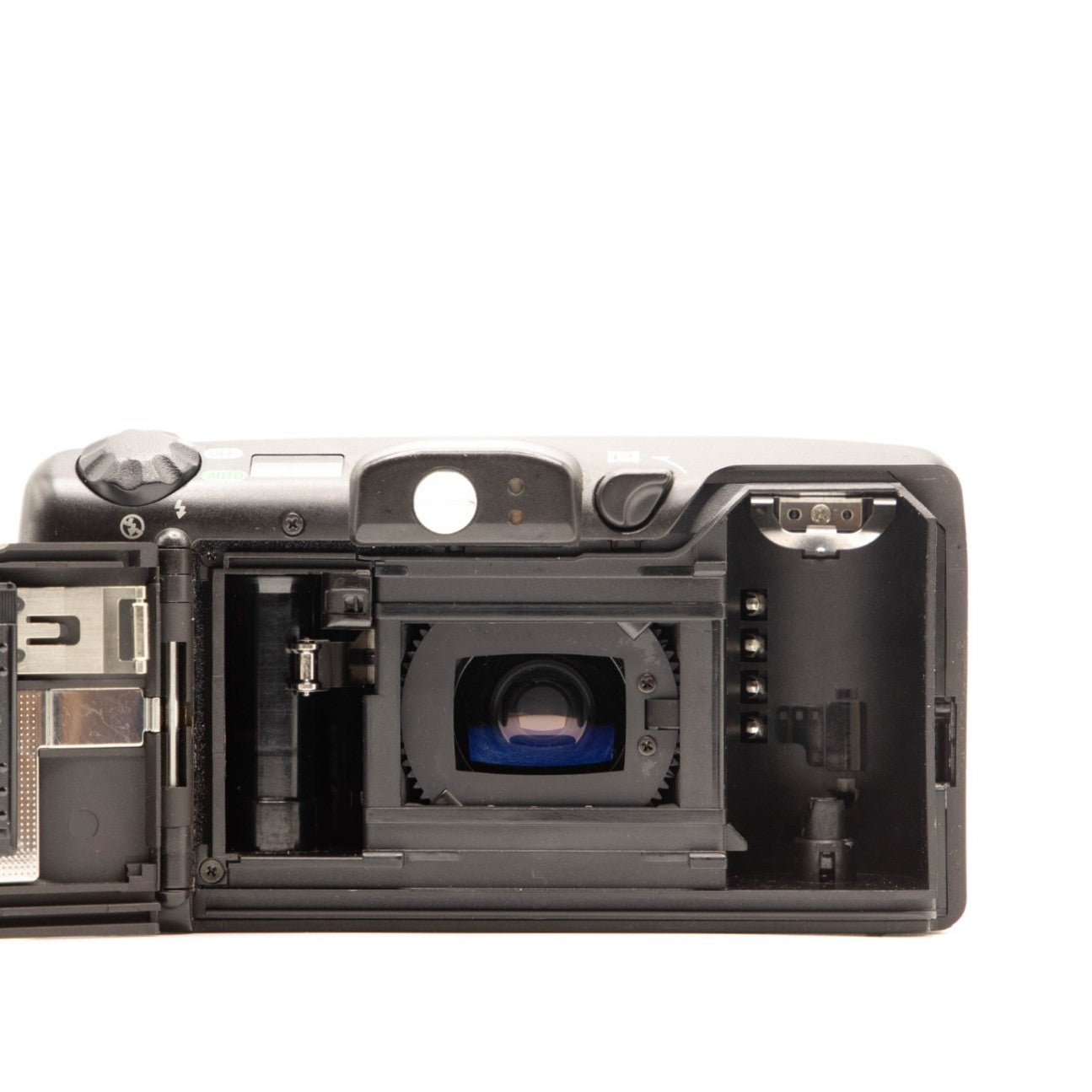 ✔ Built-in flash & intelligent metering – Includes a flash that fires in low light or backlit situations, with warning LEDs in viewfinder and metering that adjusts automatically.